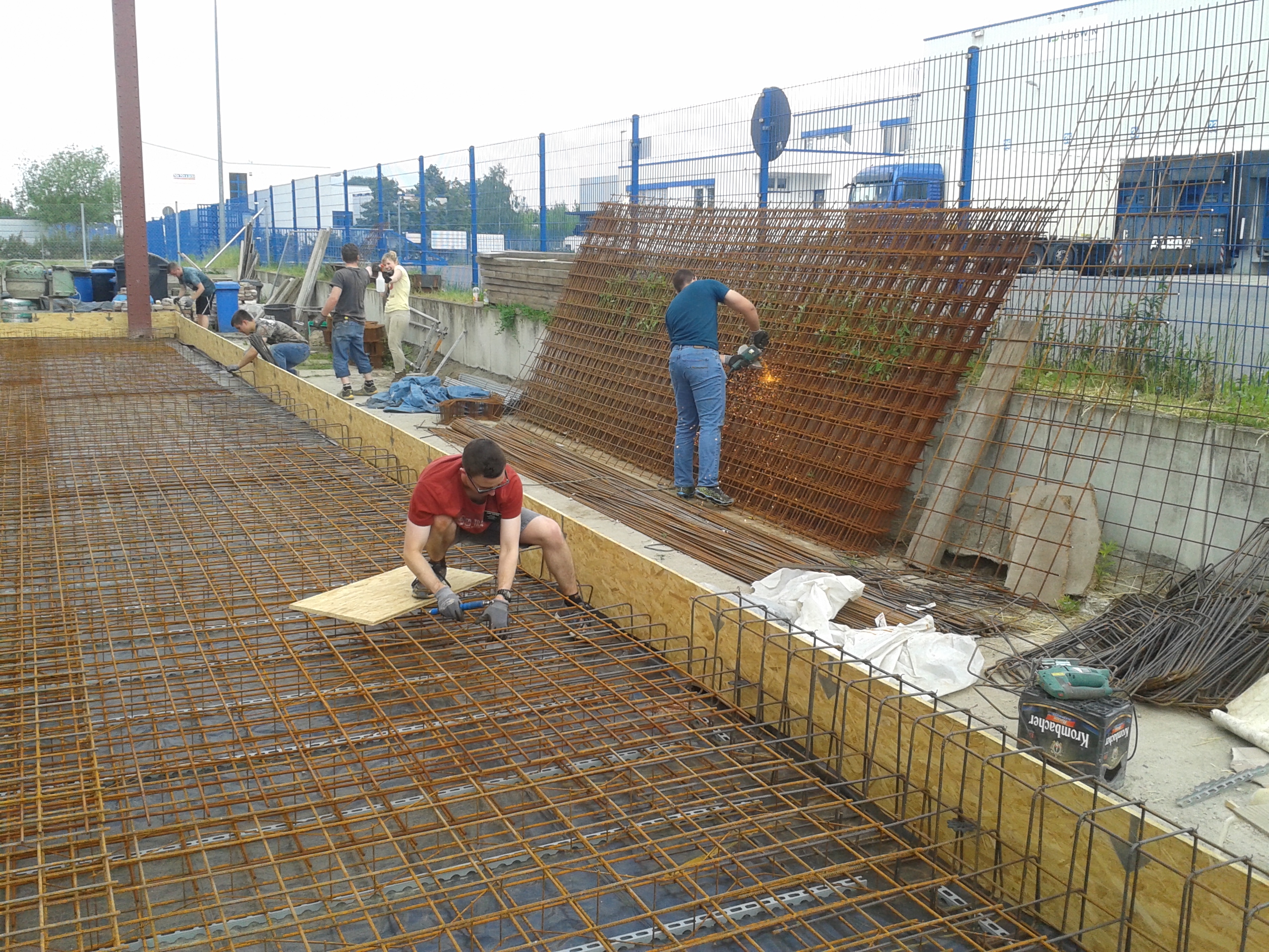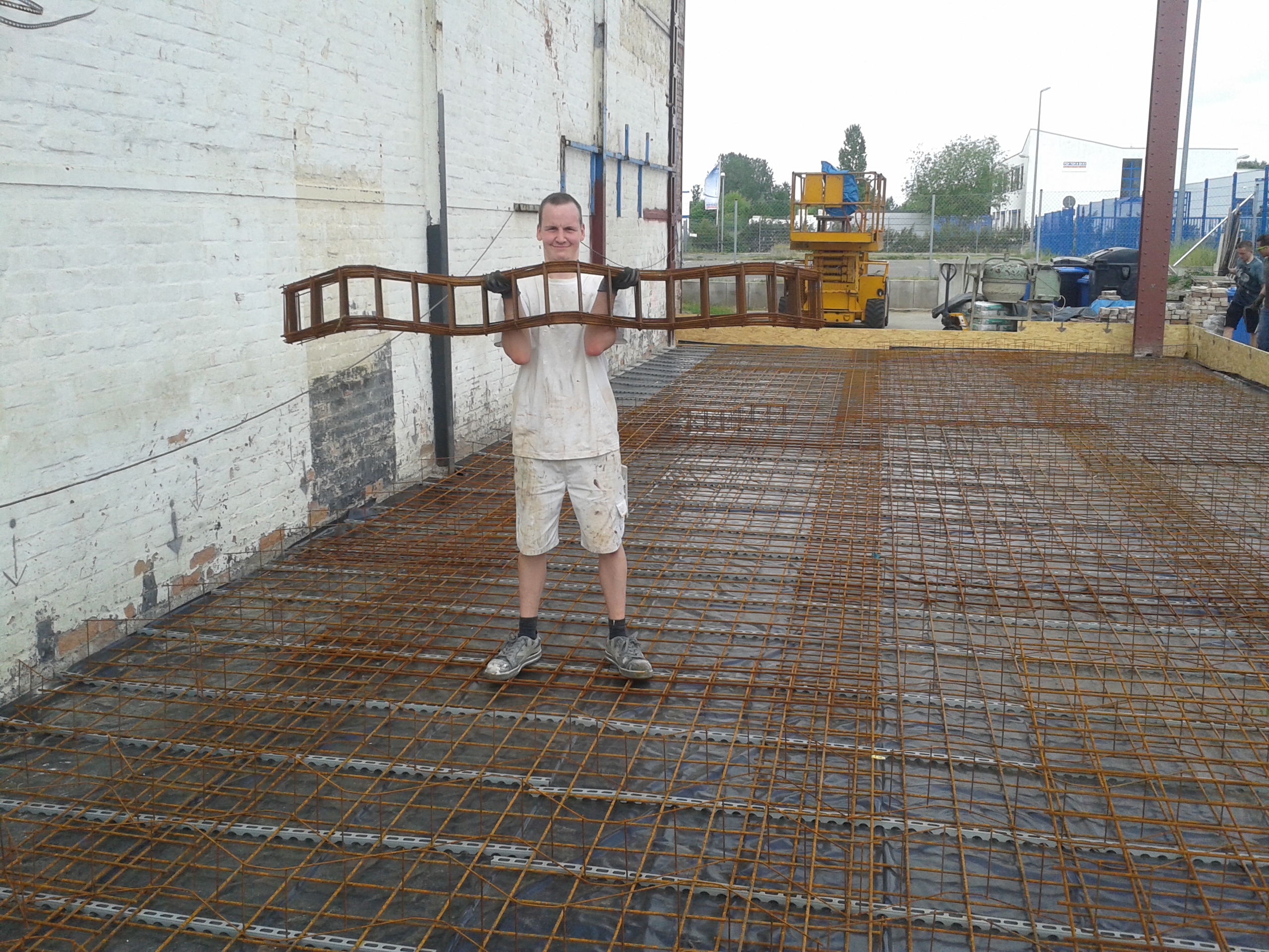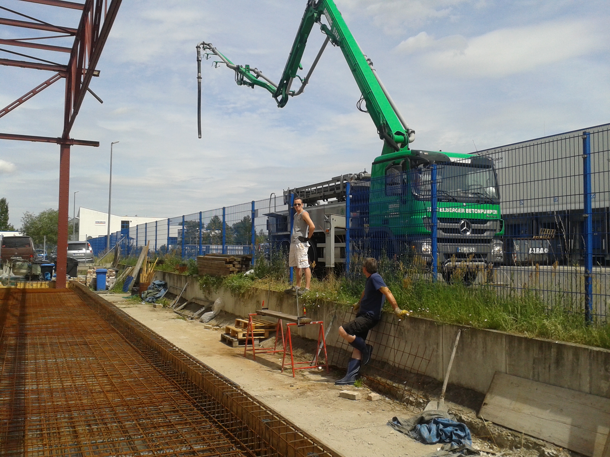 Und dann war der große Tag da, nachdem wir so viel Mühe in die Bewehrung gesteckt hatten und es ein richtiges Kunstwerk geworden ist (Ich zolle allen, die so etwas Tag ein Tag aus machen, meinen tiefen Respekt), um es nun für eine lange Zeit mit Beton zuzudecken.