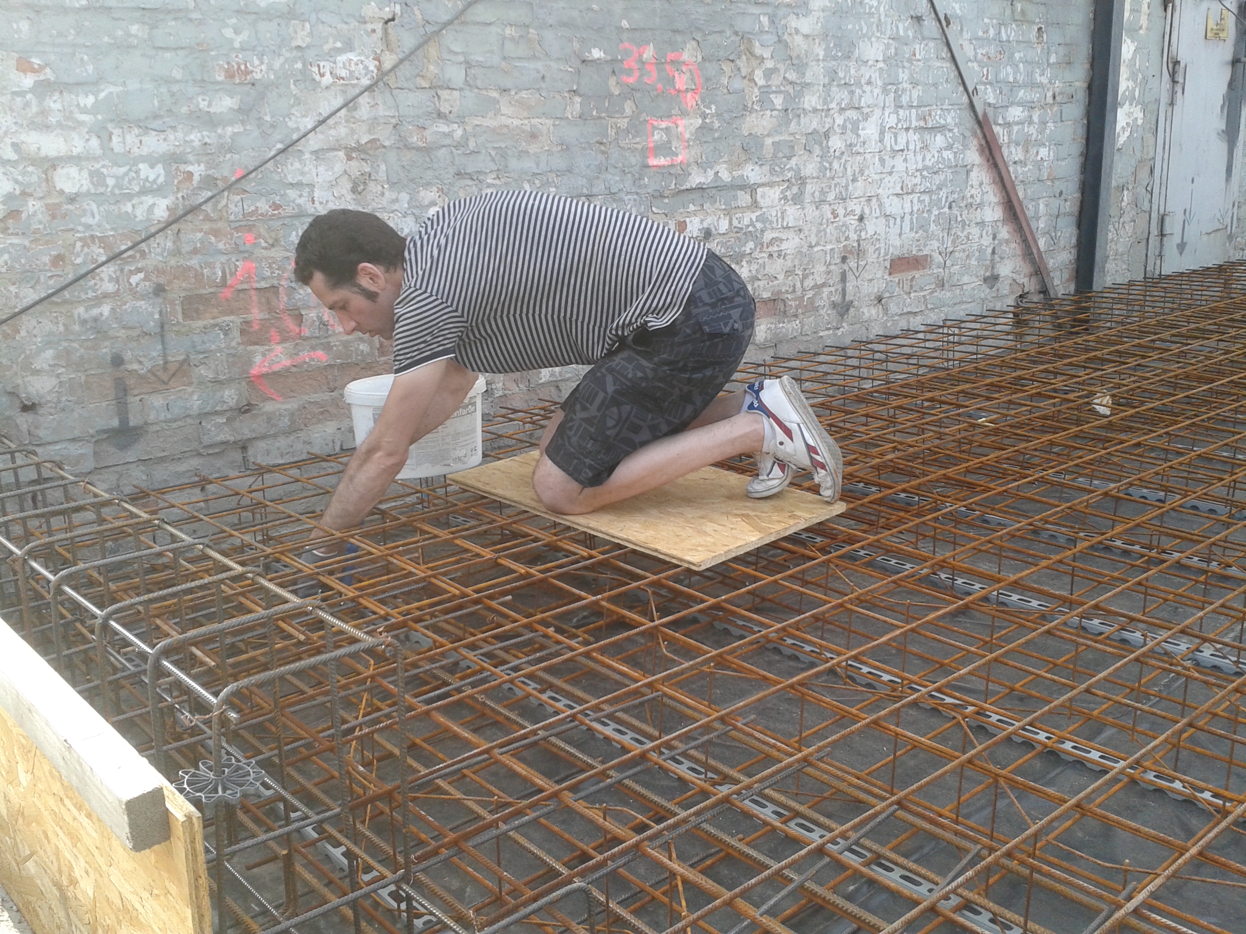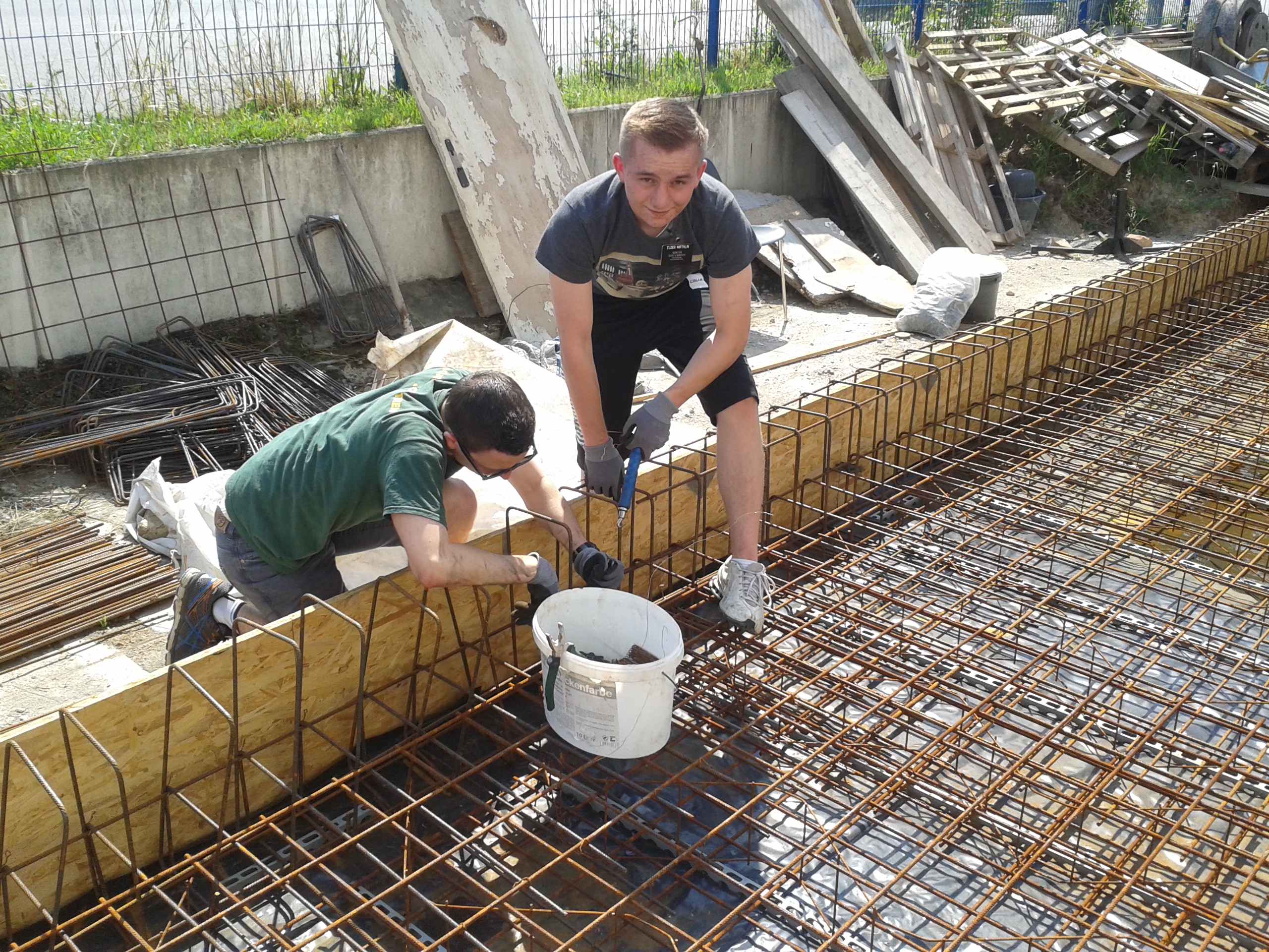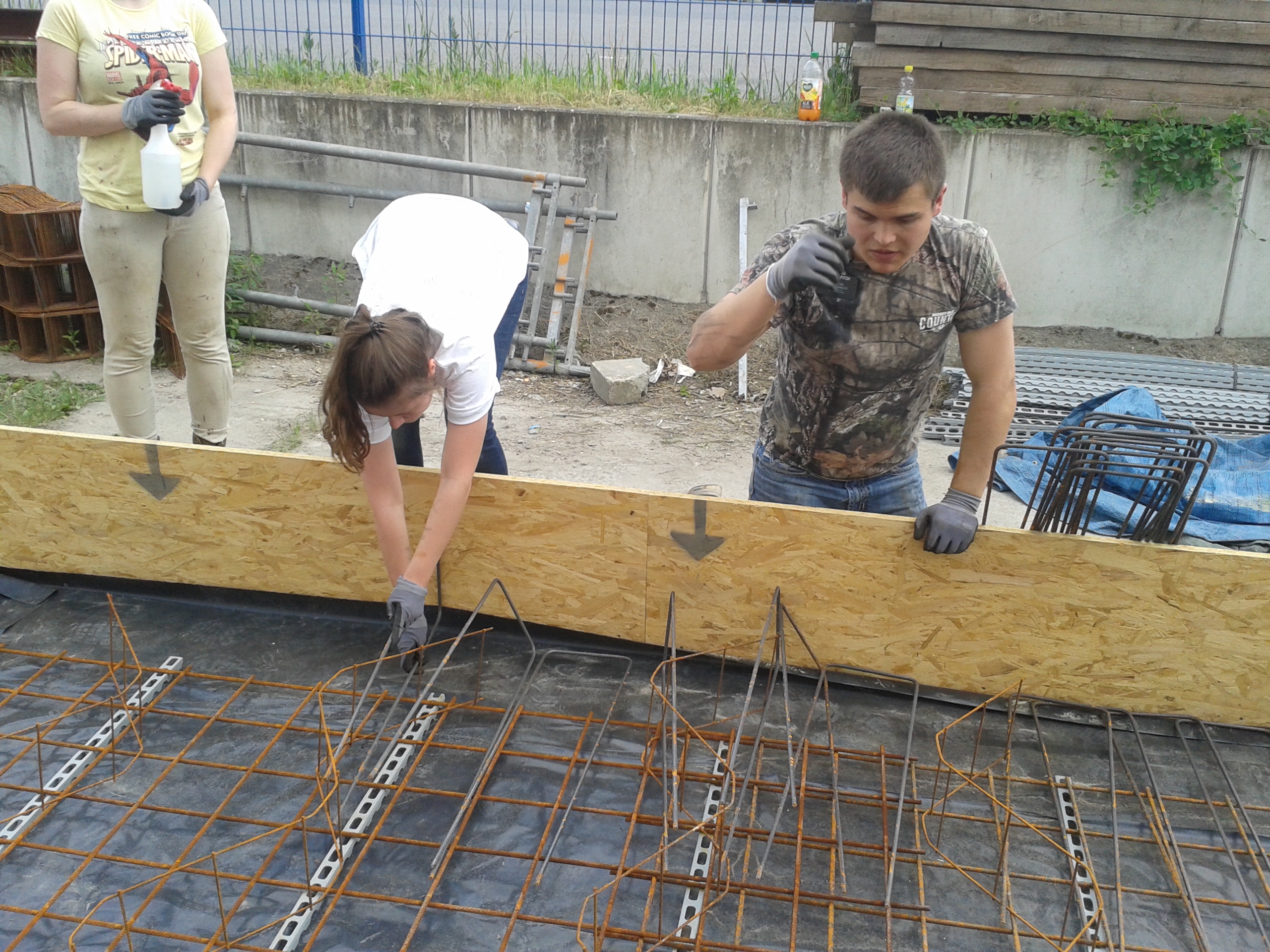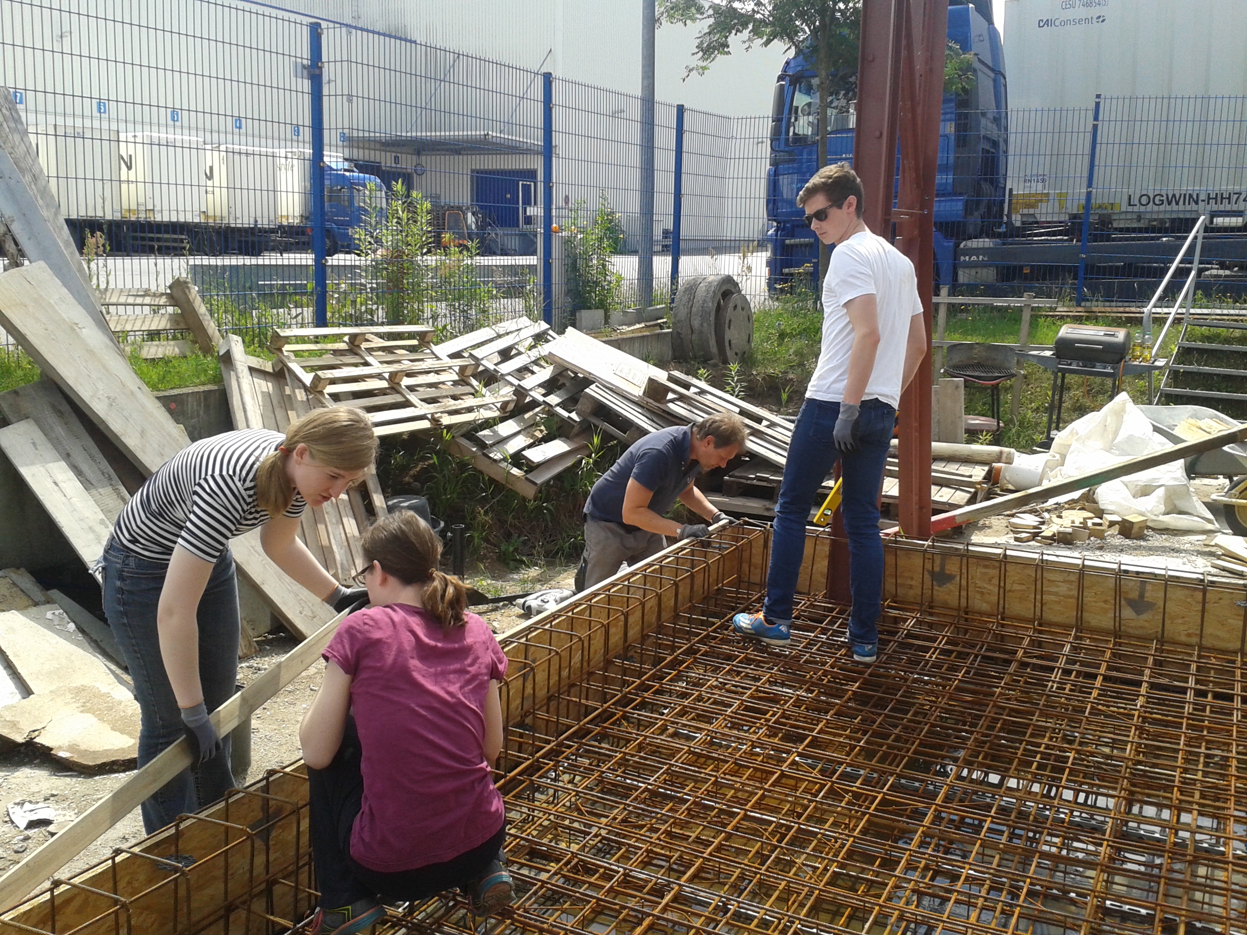 Die Bewehrung mit Draht zu knüppern hat schier endlos gedauert und das im Hochsommer! Aber dank