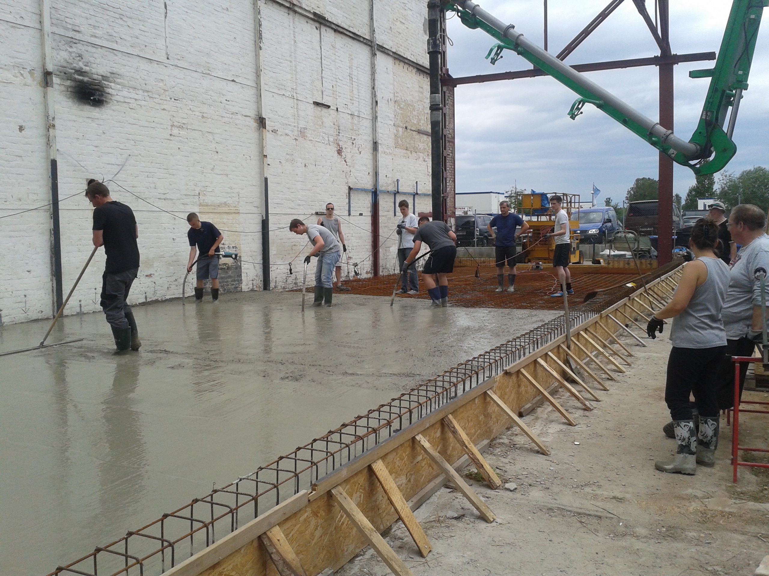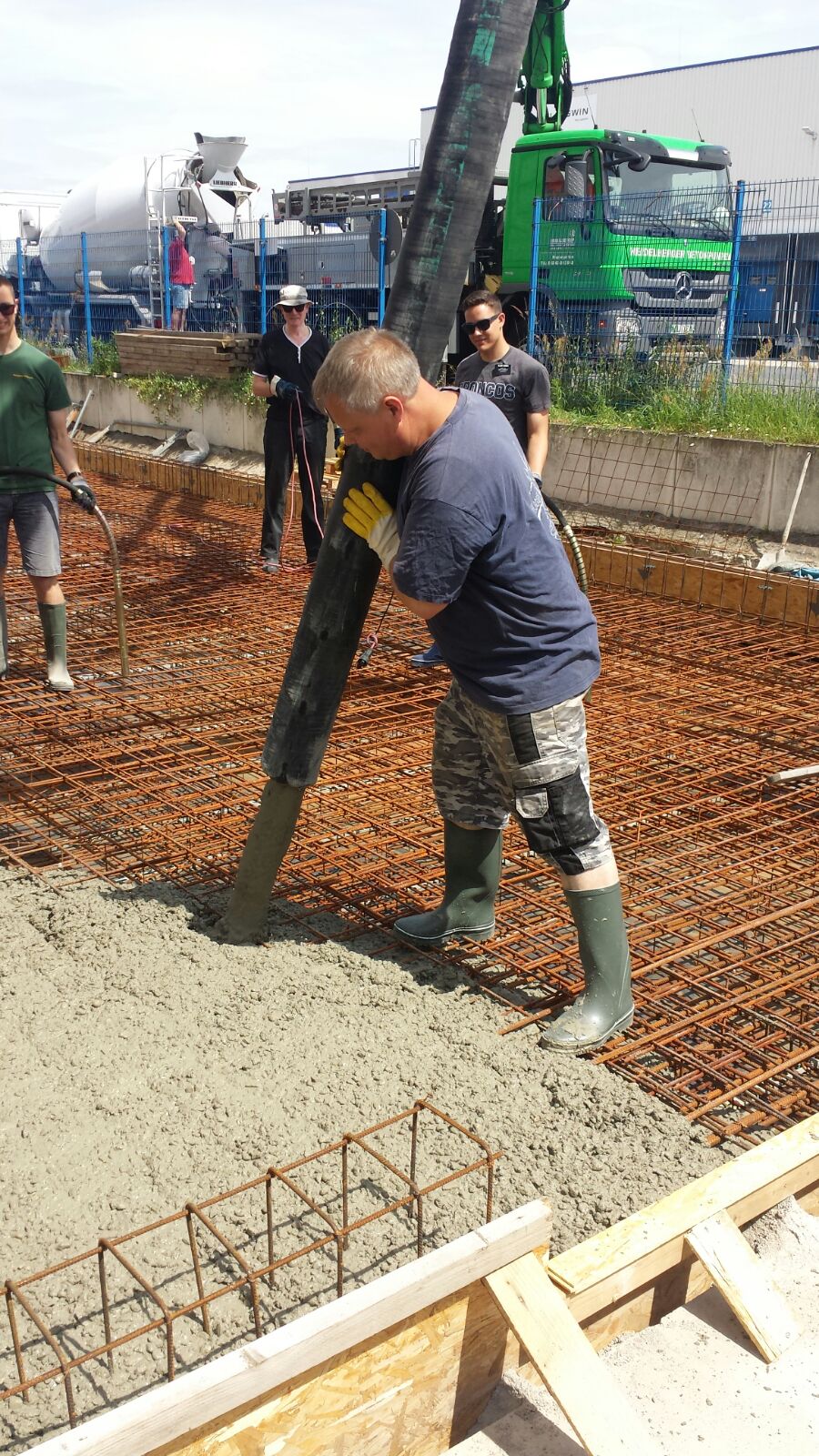 Diesmal waren auf jeden Fall genügend Leute da, um den Beton gut einzubringen und zu verdichten.