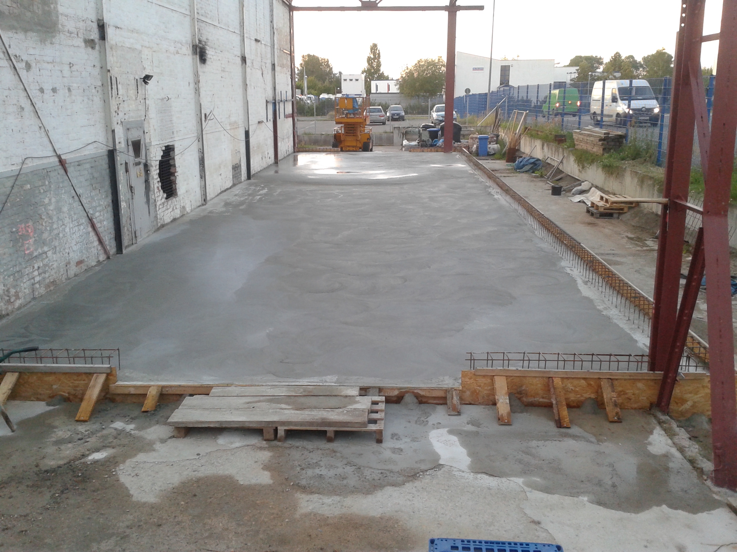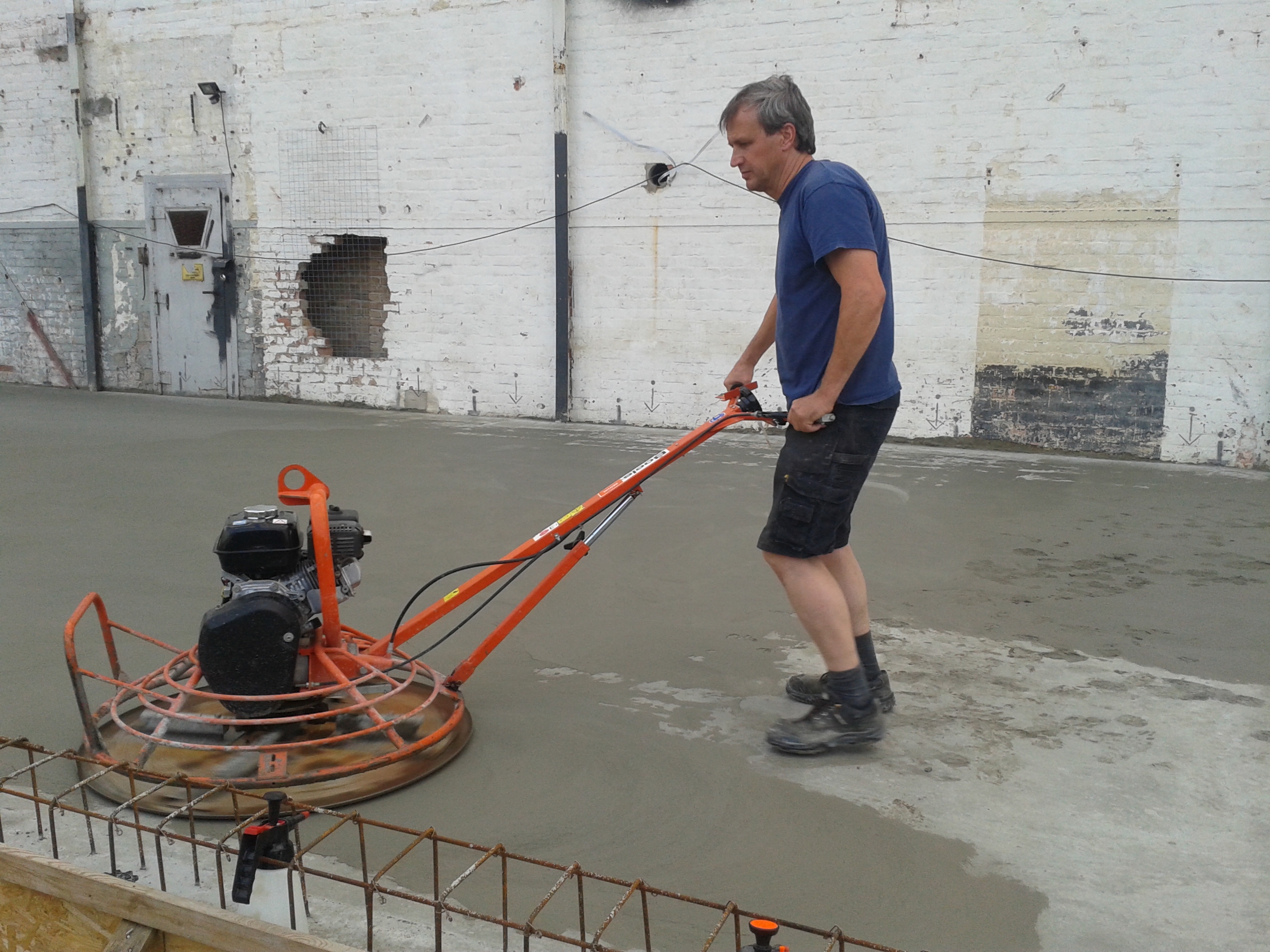 Nachdem der Beton angezogen hatte, sind wir noch mal mit einer Glättmaschine drüber.