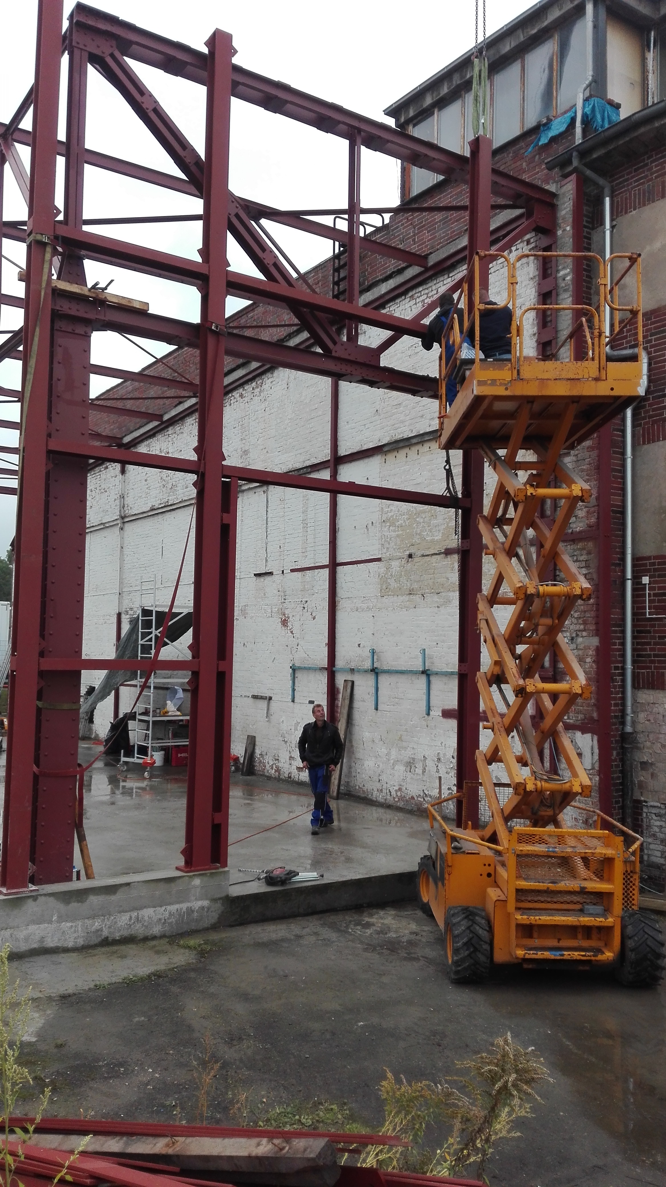Die neue Stahlkonstruktion war innerhalb von 2 Wochen komplett aufgebaut und passte akkurat, hat sich also das genaue Ausmessen im Vorwege ausgezahlt. Auch die Schweißnähte, Winkel usw. haben super gepasst. Selbst die Monteure sagten, solche Passgenauigkeit hätten sie auf Baustellen selten gesehen.