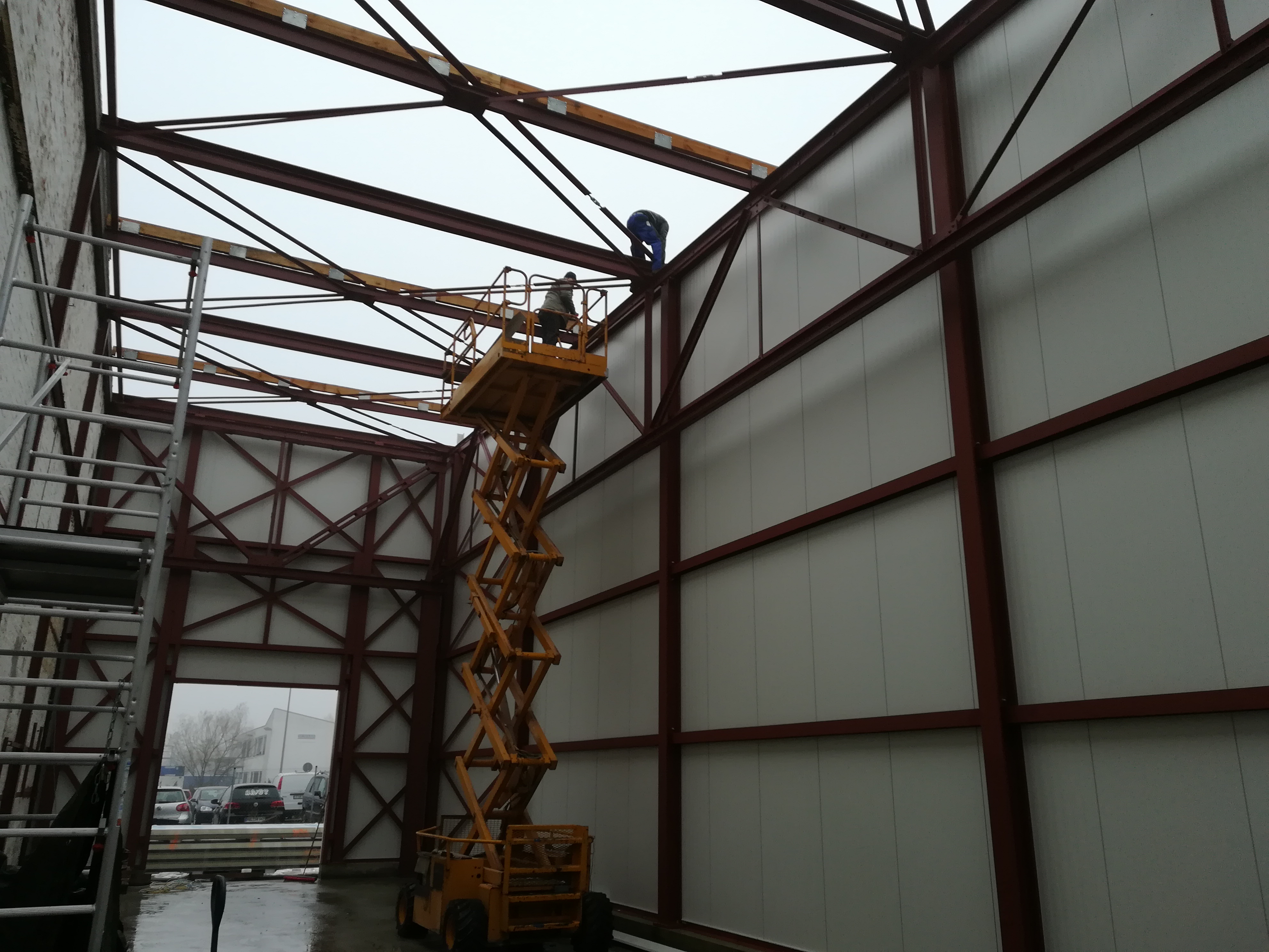 Die Herausforderung bei der Halle liegt darin, das Alte mit dem Neuen zu verbinden, ohne sich gegenseitig zu behindern. Als erstes kamen zwei Leute der Firma und machten ein Aufmaß.