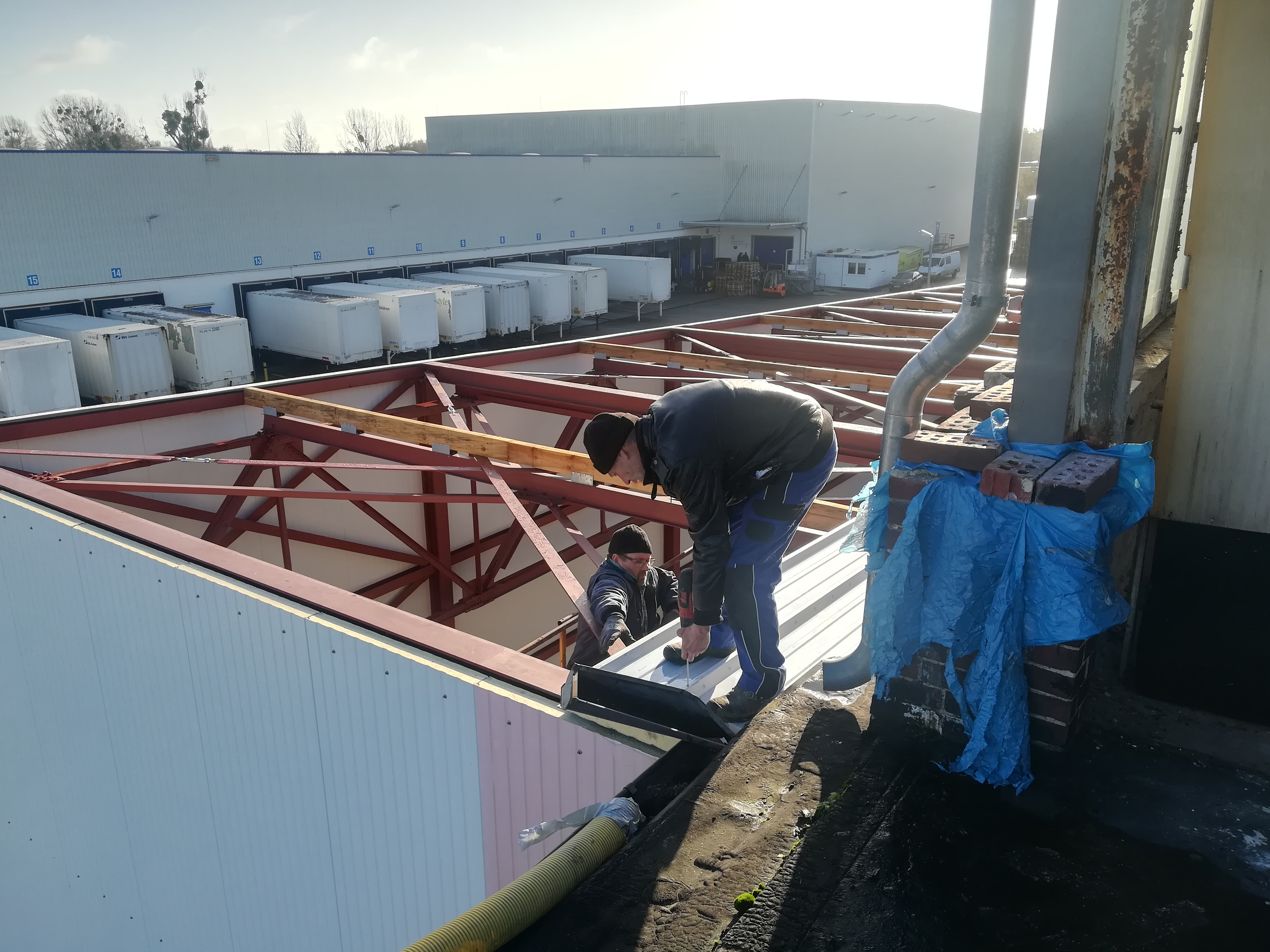 Leider gingen dann 3 Wochen ins Land, bevor die Sandwichpanele kamen, war wohl bedingt durch die Umstellung auf einen umweltfreundlicheren Schaum.