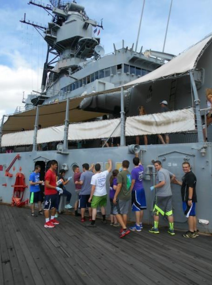 The missionaries in Hawaii are helping to preserve history at Pearl Harbor as they perform service aboard one of the world's best known battleships.